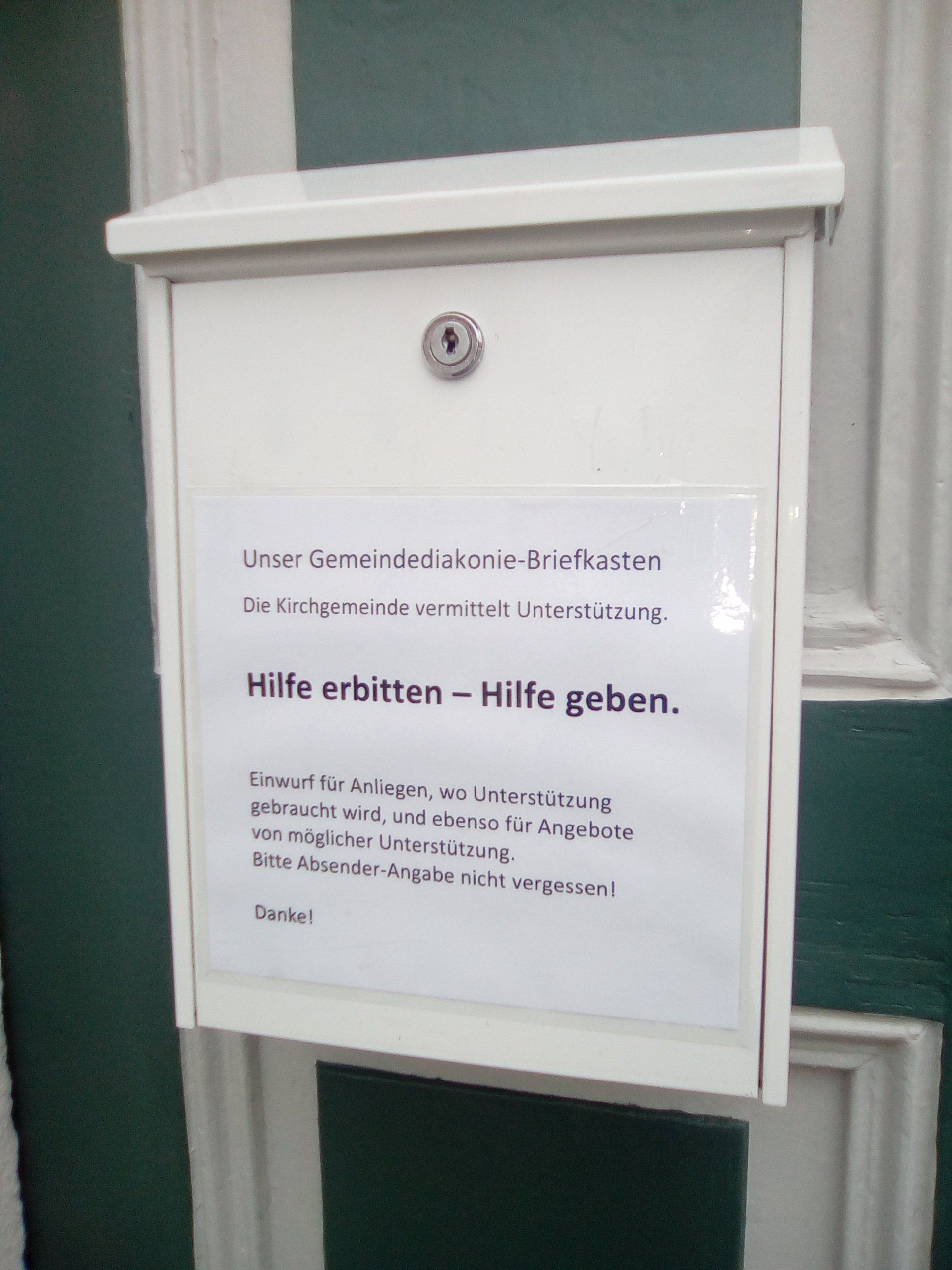 Manchmal genügt ein kleiner Hinweis in unseren Briefkasten (durch Nachbarn etc.), so kann vielleicht eine große Not verhindert oder gelindert werden. Auch wollen wir unterstützen, indem wir u.a. zum Sozialarbeiter des Diakonischen Werkes, Benjamin Lederer, Kontakte vermitteln. Die vom Kirchenvorstand berufene Diakoniebeauftragte unserer Kirchgemeinde ist Waltraud Schreyer, zusammen mit Johanna Müller.