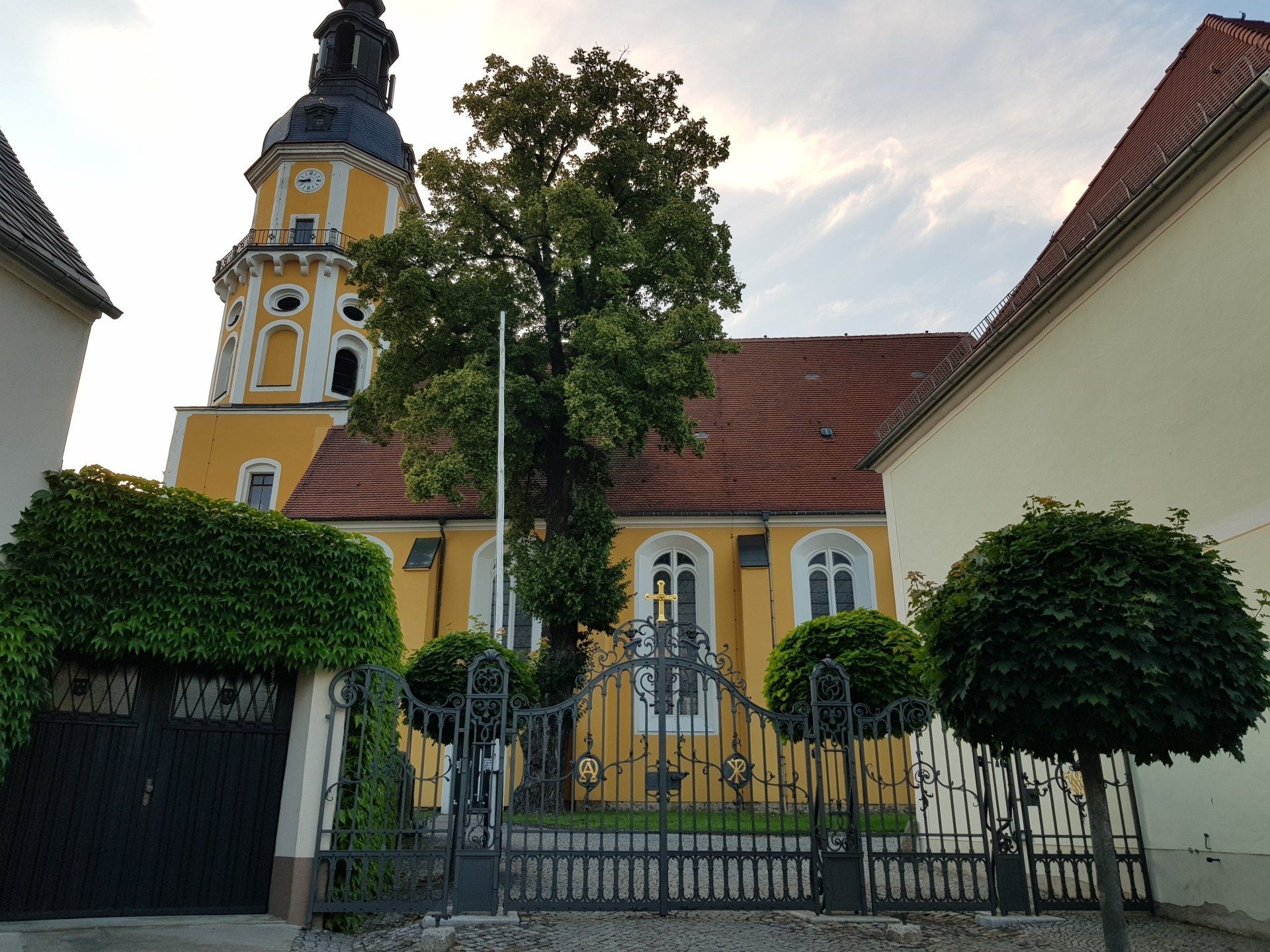 Auf dem Kirchhof steht der älteste Baum der Stadt und die Luther-Eiche sowie befinden sich das Mausoleum der Familie Naumann und das Grab einer hochgeschätzten Wohltäterin unserer Stadt, Louise Gräfin von Hohenthal (1808–1845).