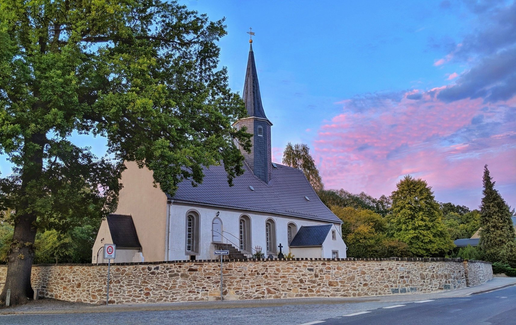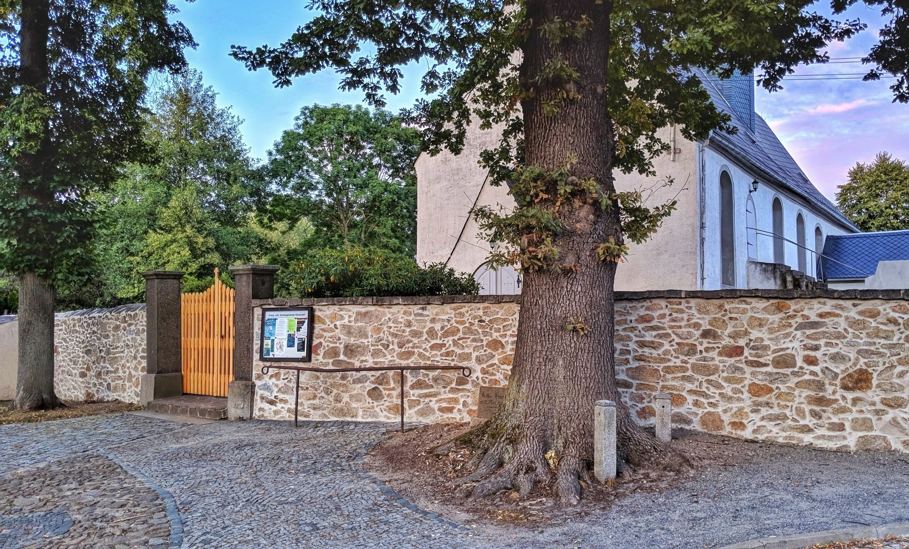 Die Kirche ist umgeben vom Friedhof, den die alte Kirchhofmauer umfriedet.